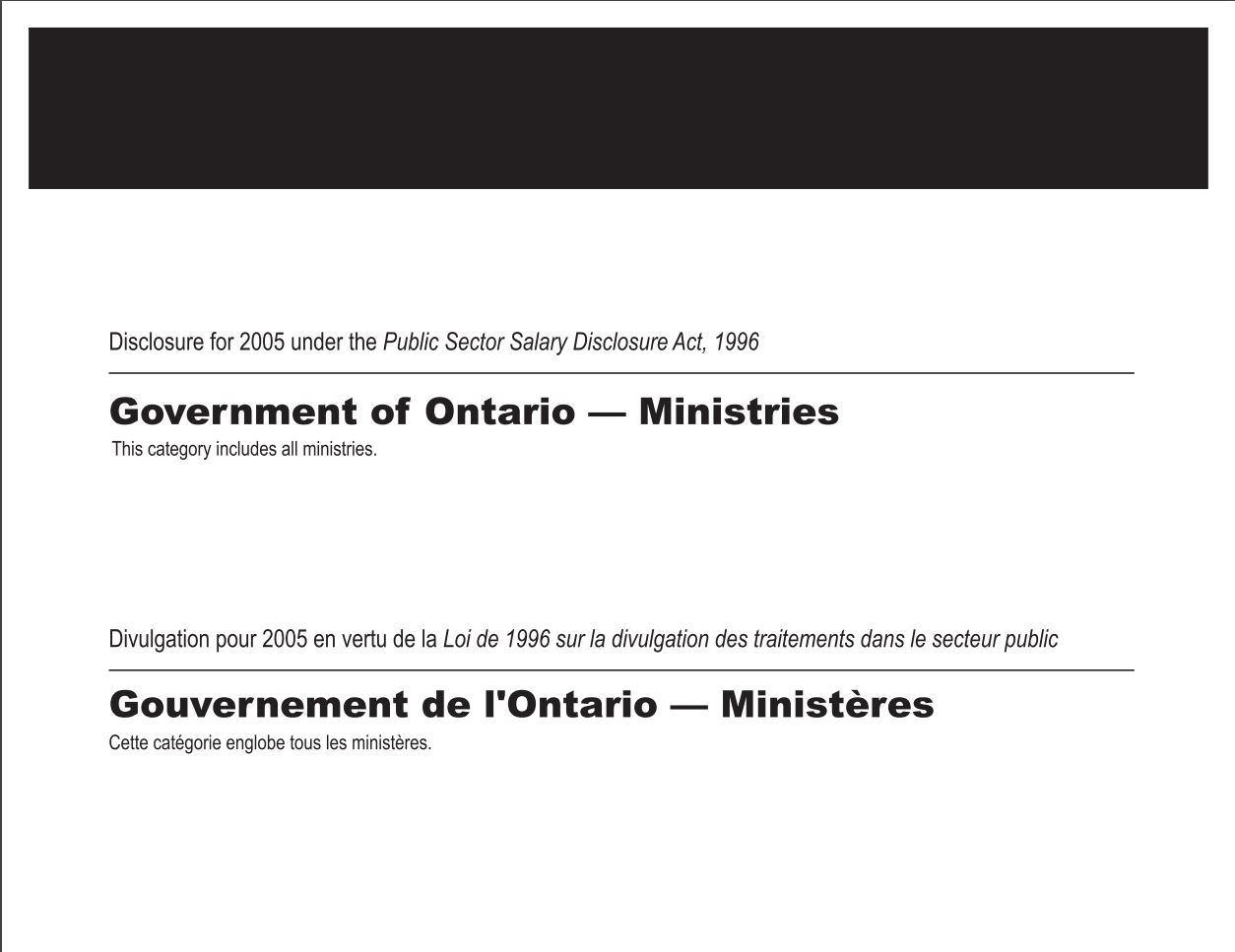 Find top earners of salary from any employer or position for any year. The Public Sector Salary Disclosure Act makes Ontarios public sector more open and accountable to taxpayers. The salary disclosure data covers the Government of Ontario crown. The act requires organizations that receive public funding from the Province of Ontario to make public by March 31 each year the names positions salaries and total taxable benefits of employees paid 100000 or more.